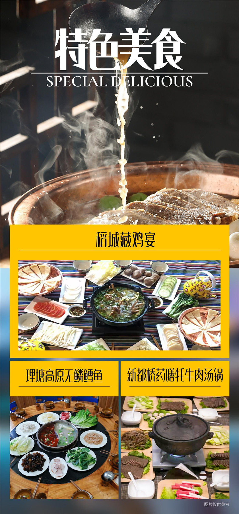 【赠送】:赠送高原原生态牦牛肉滋补汤锅,赠送日瓦康南藏家歌舞土火锅,赠送康巴民俗文化村,氧气,旅游三宝