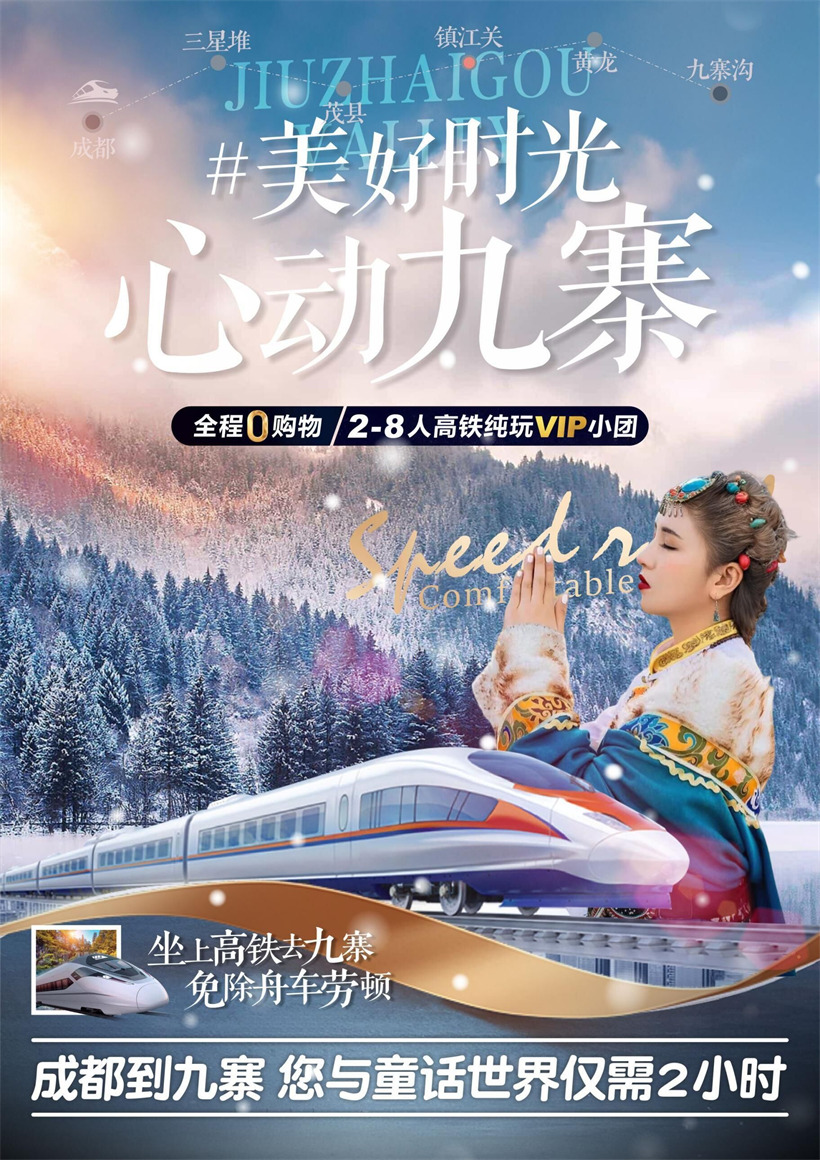 早餐后出发前往人间仙境、童话世界―【九寨沟世界级自然风景区】(观光车 80/人自 理必须消费)进入景区后换乘景区观光车,进入“人间天堂”九寨沟国家公园。游览诺 日朗瀑布、树正群海、长海、五彩池、珍珠滩、五花海等景点。九寨沟是由翠海、叠瀑、 彩林、烟云、雪峰以及奇异多彩的藏族风情组成格调自然且风韵独具的仙境。九寨沟的 景观主要分布在树正沟、日则沟、则查洼沟三条主沟内,这三条沟略似”丫”字形。景 区内有九寨沟最宽、最高、最雄伟壮观的三大瀑布;珍珠滩瀑布、诺日朗瀑布,双龙海 瀑布,景区内共有一百多个高山湖泊及数十处高低不一的流泉飞瀑等景观。最美最奇特 的是九寨沟的水,清冽透底,变幻无穷。(景点游览时间约 6 小时)下午 14:30 集合出 发前往镇江关高铁站,乘车返回成都东站统一散团。告别童话般的九寨沟之旅