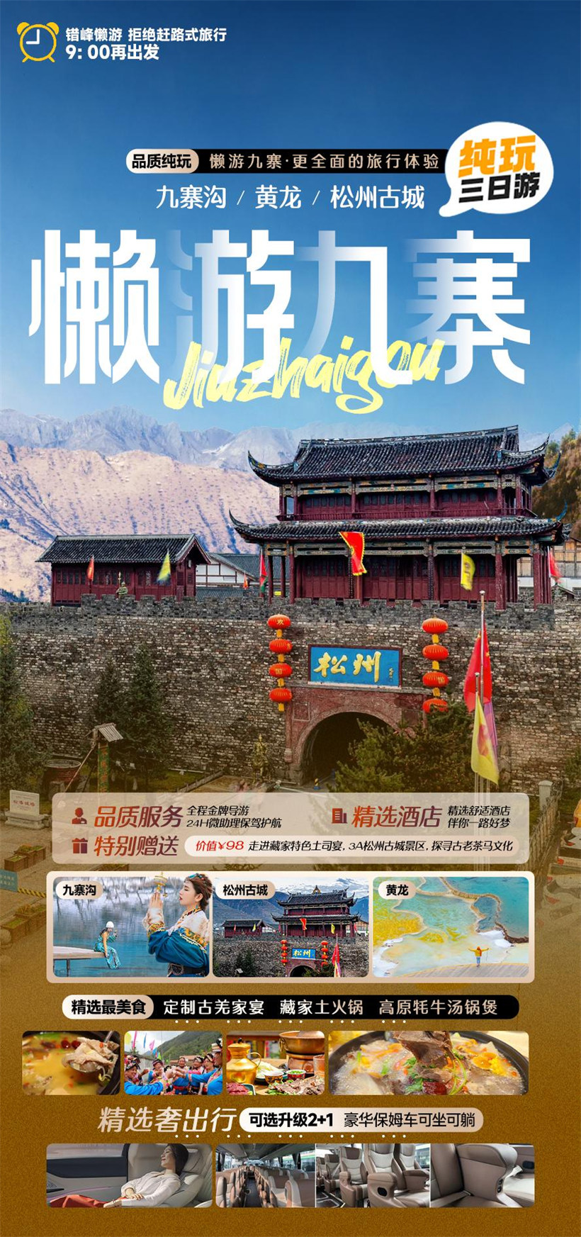 【门 票】含九寨沟门票、九寨沟观光车、黄龙门票、
