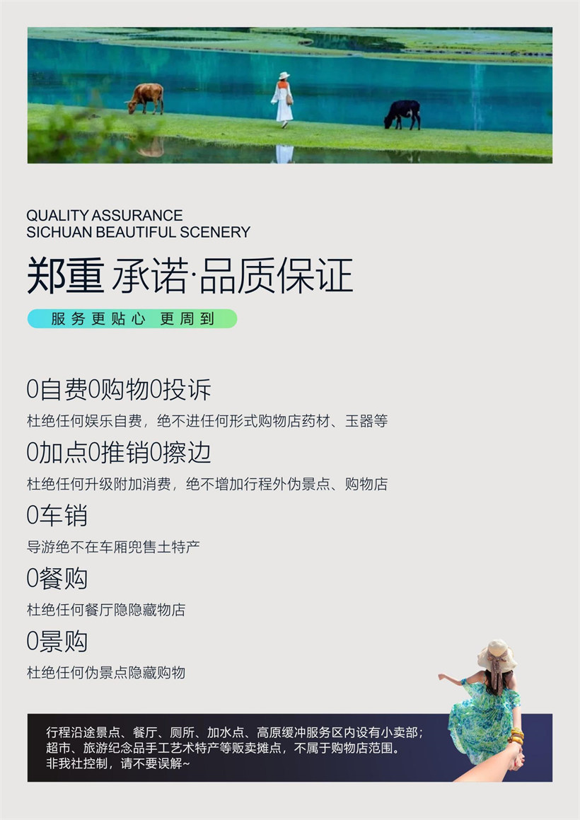 都江堰行程:观光车20/人,电瓶车15/人,耳麦10/人,玉垒扶梯40元/人 九寨沟保险10元/人黄龙保险10元/人
