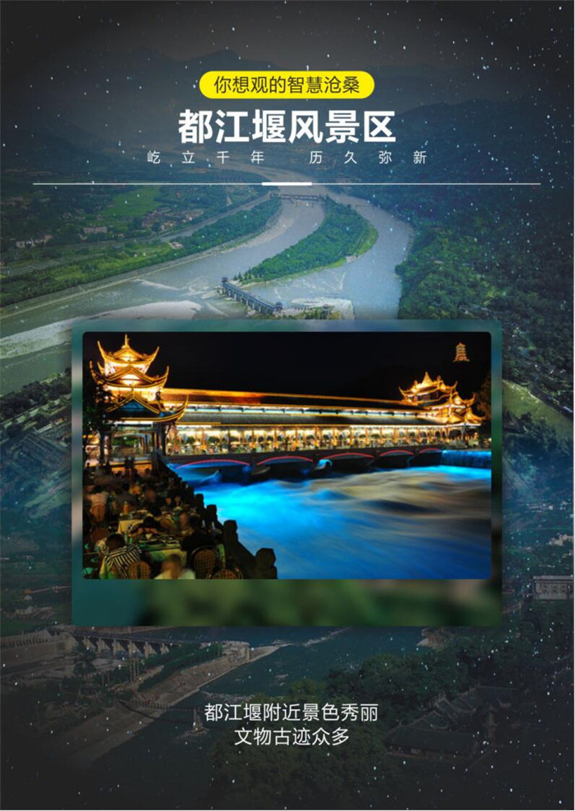 早上7点左右统一地点集合出发,前往著名水利工程5A级景区—【都江堰景区】(含景区首道大门票,游览时间2小时,景区交通须自理:观光车20/人,电瓶车15/人,耳麦10/人,玉垒扶梯40元/人)游览宝瓶口、飞沙堰泄洪坝、观鱼嘴分水堤,过安澜索桥。隔着岷江内江观看在5.12地震中被损坏的秦堰楼、纪念李冰父子的二王庙。中午享用当地特色美食—国宝养生宴,午餐后前往茂县沿途观赏岷江河谷风光、藏羌民族风情,下午翻越1933年地震遗迹-叠溪海子,抵达—松潘古城(游览30分钟 )不含上城墙费用),松潘古名松州,曾经是川西北地区最早的政治,经济,文化中心,后前往参加走进藏家家访藏式土火锅(本项目为赠送项目,不用不退费)行程结束后入住酒店休息