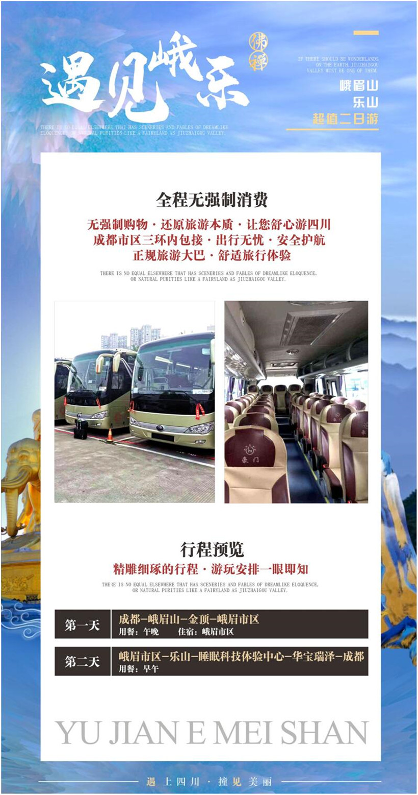 约06:30从成都乘车出发前往峨眉山景区,约9:30抵达国家5A级景区、世界自然与文化双遗产【峨眉山风景区】(游览时间约6小时),换乘观光车(90元/人,自理)从黄湾站出发,沿途皆为山路,可能会出现颠簸不适。