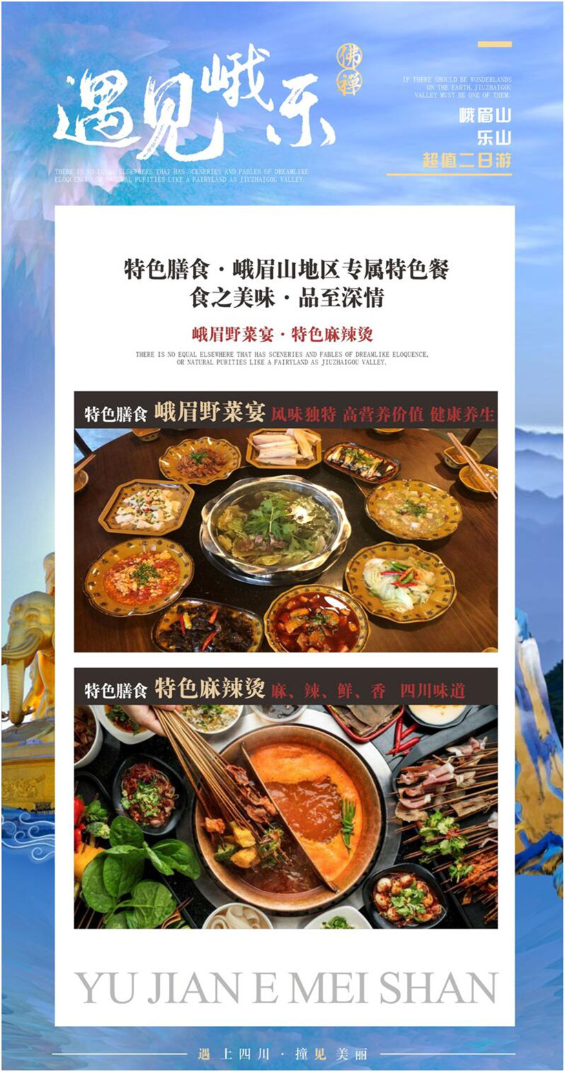 约18:00前往享用地道的峨眉特色晚餐如:乐山特色美食牛华麻辣烫,结束后前往峨眉山市区酒店入住休息