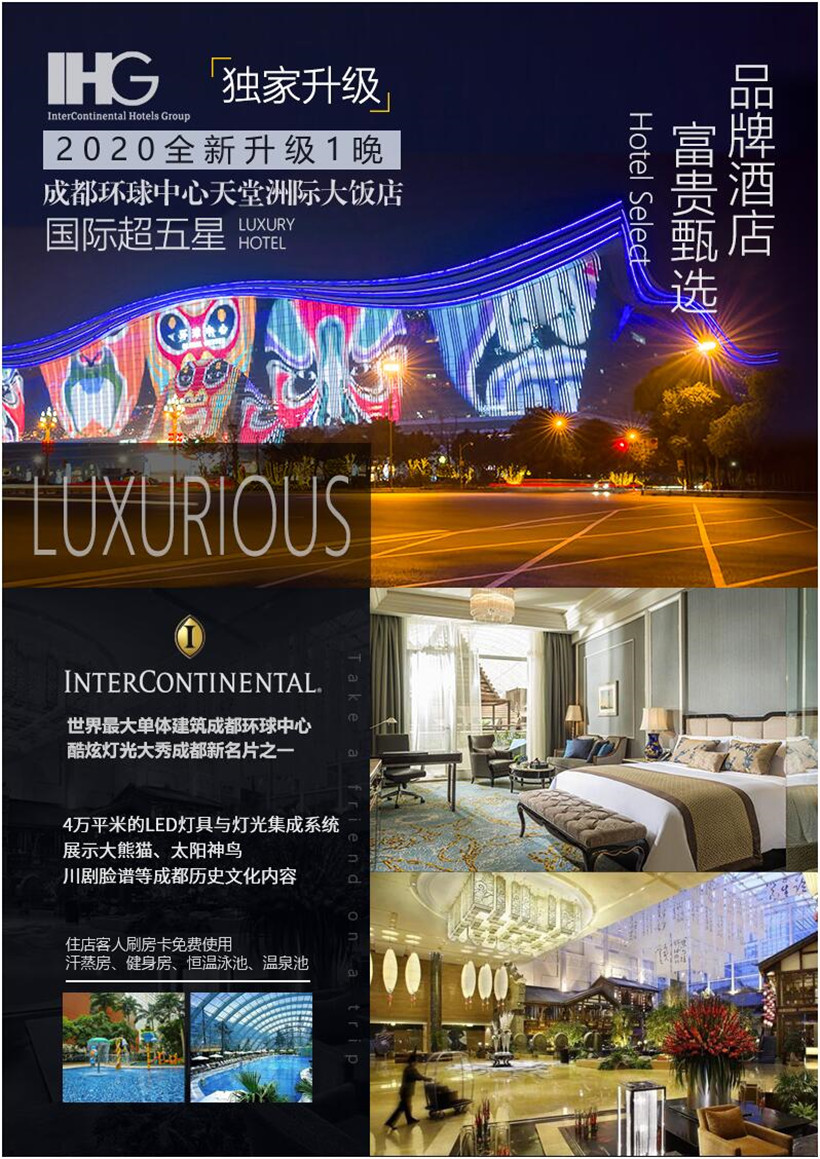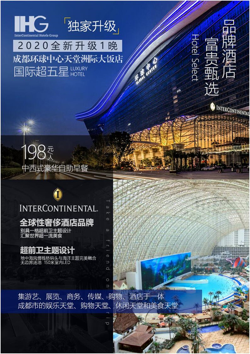 成都参考酒店,指定入住春熙路商业圈酒店1晚,商业圈酒店根据酒店实际房态调配。