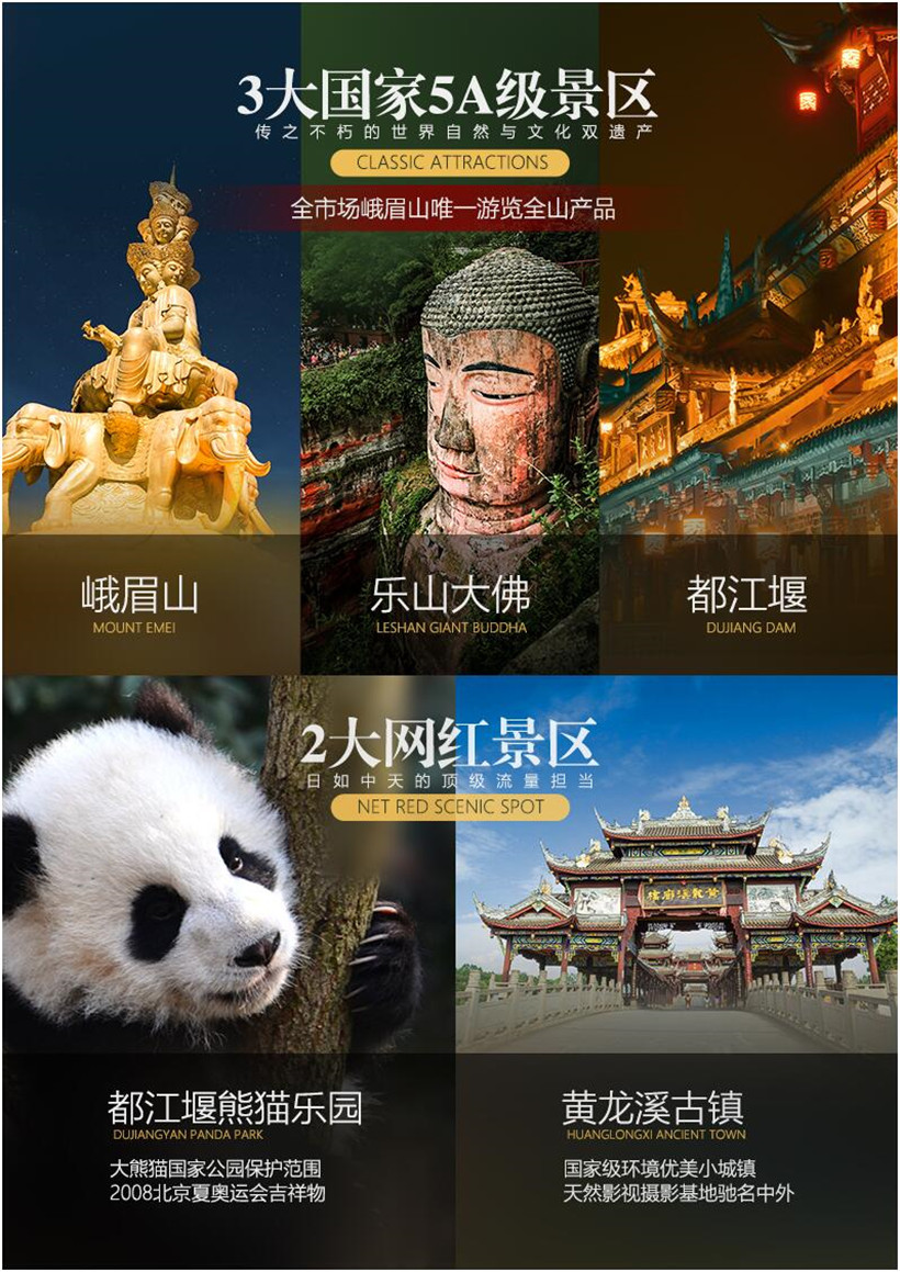备注--门票优惠/乐山大佛退20元/人、,免票退40元/人、峨眉山全程优惠退 40 元/人、免票退 80 元/人)、都江堰全程优惠退20元/人、免票退40元/人