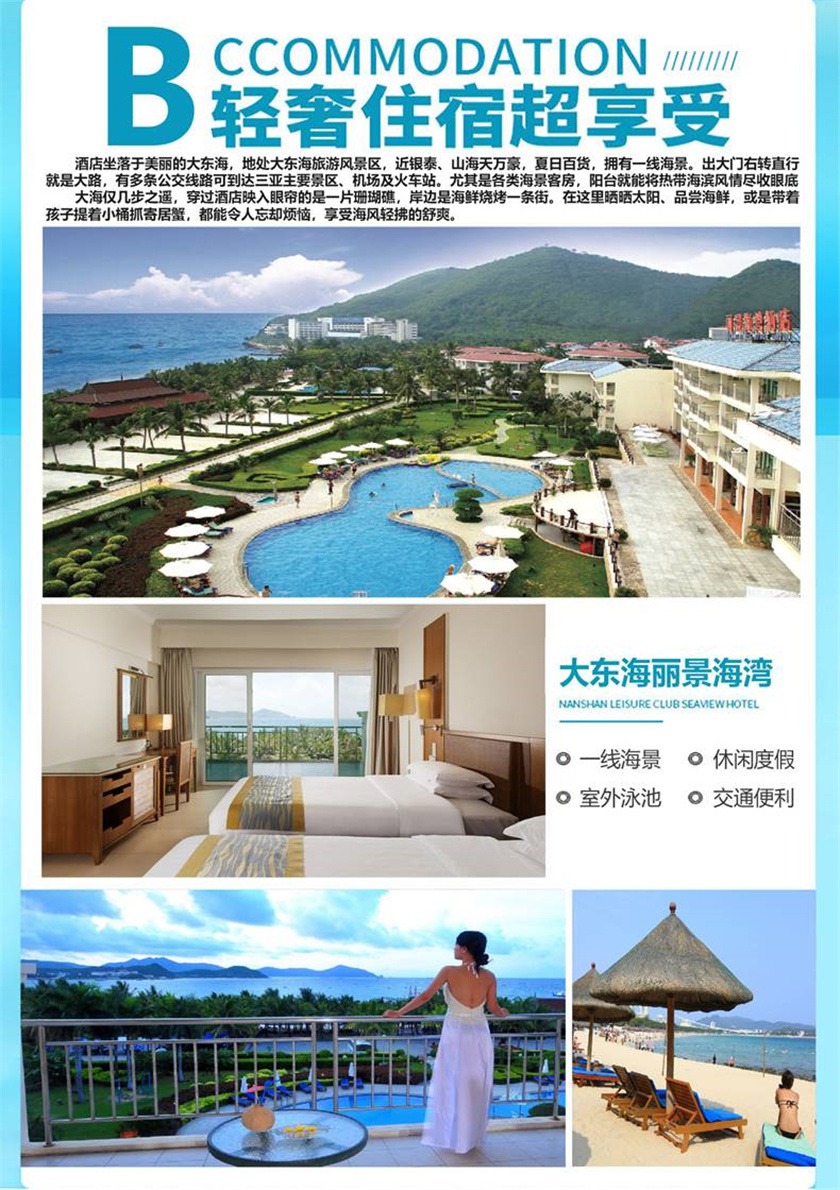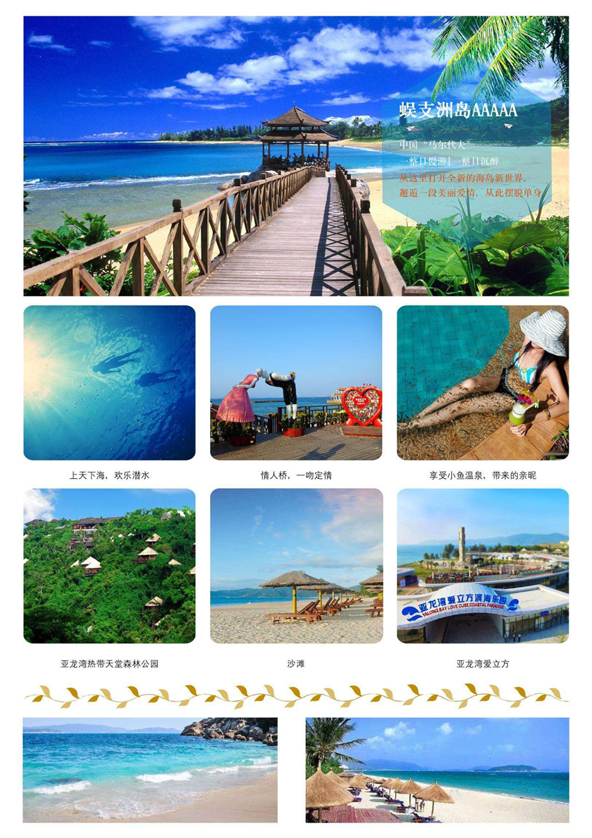 ◎ 【蜈支洲岛嗨玩一整天】:①玩:上天入海,任我翱翔;岛上四周海域清澈透明,海水能见度6—27米,南部水域海底有着保护很好的珊瑚礁,是世界上为数不多的没有礁石或者鹅卵石混杂的海岛,海底珊瑚五彩斑斓,美丽的热带鱼四处游荡,这里是公认的中国潜海胜地;②景:前往冯小刚贺岁喜剧《私人订制》外景拍摄地,重温电影画面;③情:情人桥,一吻定情,终成眷属;④拍:这里沙滩、阳光、碧水,绿树构成一幅美丽的滨海风光,随手一拍都是天然无需滤镜的美照,朋友圈刷赞利器;④自由:在这里您可以体验与大海同步呼吸,私人定制看海时间,可以嗨玩一整天哦,感受前所未有的自由,把海看够玩够!(行车约50分钟,游览不少于5小时,含往返乘船时间,海上项目自理)。