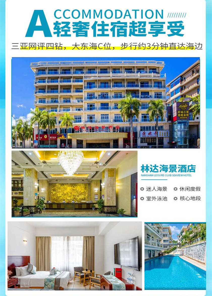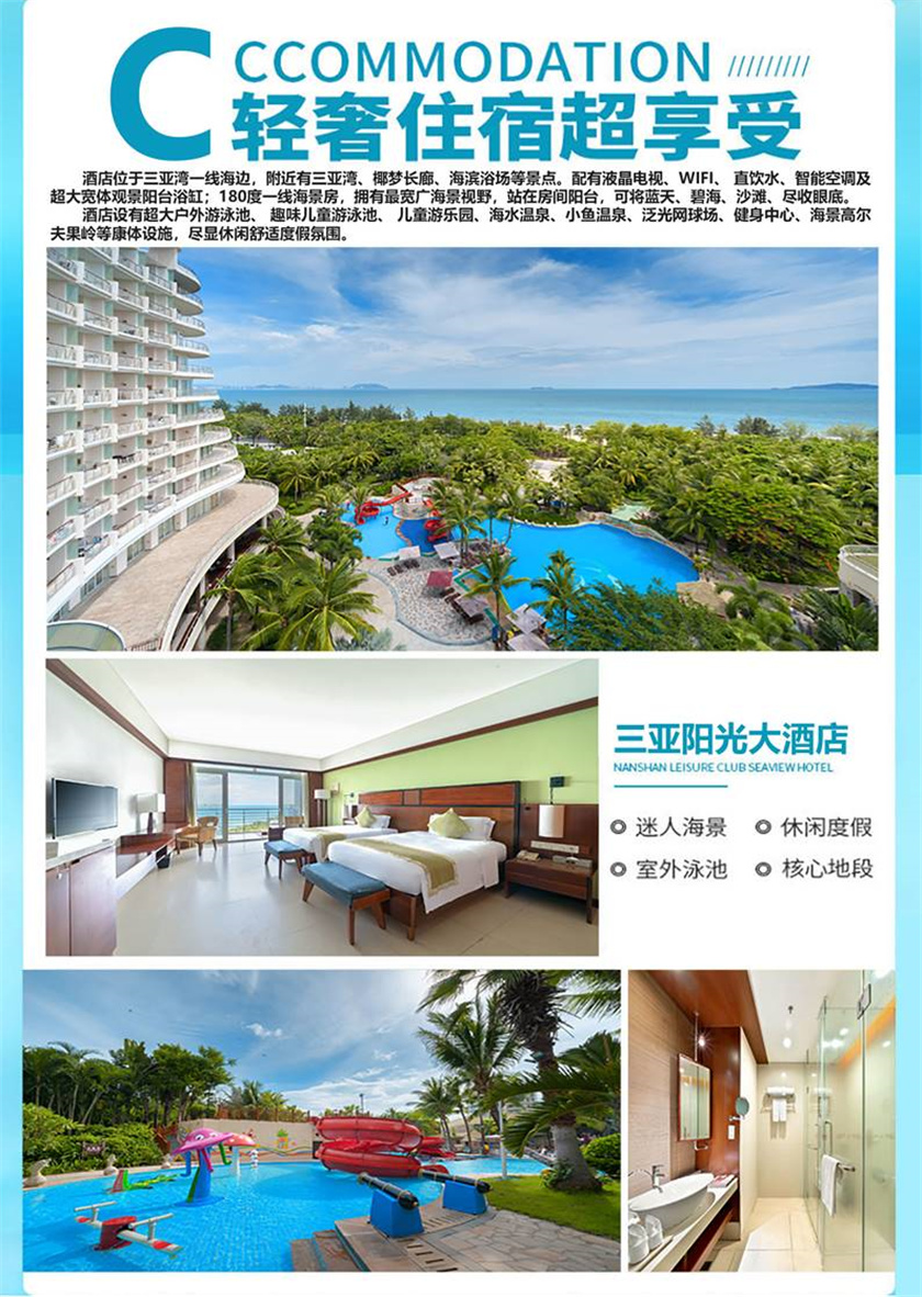 ◎ 接下来前往素有“东方夏威夷”之称的【亚龙湾海底世界沙滩/不少于120分钟】,这里不仅是潜水爱好者的天堂,更是海上休闲的世界级选择之一,阳光、空气、绿色、海水、沙滩五大海南旅游要素在这里得到了最完美的演绎。行程结束后自由活动。