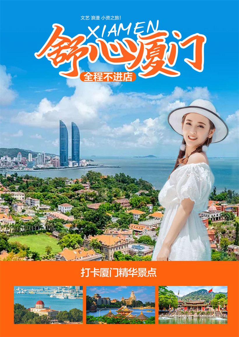 厦门岛内各酒店接团;游览千年古刹南普陀寺(因受疫情影响,景区需提前预约,如因名额限制未预约上,则前往铁路文化公园参观游览。游览不少于50分钟),南普陀寺是厦门著名古刹,居于鹭岛名山五老峰前,背依秀奇群峰,面临碧澄海港,风景绝佳。始建于唐代,为闽南佛教胜地之一。寺内天王殿、大雄宝殿、大悲殿建筑精美,雄伟宏丽,各殿供奉弥勒、三世尊佛等。乘车前往【厦门健康步道-网红桥】如飞鸟般架设在两座山体之间,这座悬索桥看起来超酷!在林中段每 300 米设置 1 处休憩点,结合观景平台、驿站、主线加宽段、出入口坡道等处设置休息驻足的空间。天桥上还设计了特别的观景台,慢下脚步,越过树梢,穿林而出,厦门的“网红”打卡胜地。邮轮中心码头乘轮渡船前往海上花园鼓浪屿游览(游览不少于180分钟):岛上四季如春,无车马喧嚣,鸟语花香,素有“海上花园”之美誉,又因音乐人才辈出,钢琴拥有密度居全国之冠,又得美名“钢琴之岛”、“音乐之乡”。万国建筑博览:错过会遗憾的经典 鼓浪屿音乐厅-协和礼拜堂-天主教堂-西班牙领事馆-日本领事馆-英国领事馆 这一路是摄影师们喜爱的一段,也是你错过会倍感遗憾的一段路程。除了见识到岛民们听音乐会的聚集地,岛上两座最知名宗教建筑将在你眼前呈现,古希腊式基督教堂,哥特式罗曼建筑特征的天主教堂,还有3大知名领事馆,都将给你带来视觉上极大的冲击。毓园:沿途游览为纪念中国著名妇产科专家林巧稚大夫而建的园林景观——【毓园】。港仔后沙滩:海滩嬉戏 港仔后沙滩 来厦门最不能错过的是看海,特别是对于北方内地的旅行者来说。鼓浪屿有大小诸多海滩,棒糖选取了配套设施最为完善,视野也最为开阔的港仔后沙滩,带你体验漫步在南方小岛海滩,赤脚戏水踩沙的休闲时光。龙头路商业街:之后在岛上龙头路商业步行街自由活动,自行品尝当地特色小吃,顺着门牌:潘小莲酸奶、林记木担鱼丸、八婆婆烧仙草、黄金香肉松、Babycat私家御饼屋、汪记牛肉香食室、179号壹柒玖土笋屋、181号马拉桑、张三疯奶茶店、街心花园茯苓糕、189号龙头海蛎煎、黄则和花生汤、叶氏麻糍、而后再去“花时间”坐坐,品一杯醇正的咖