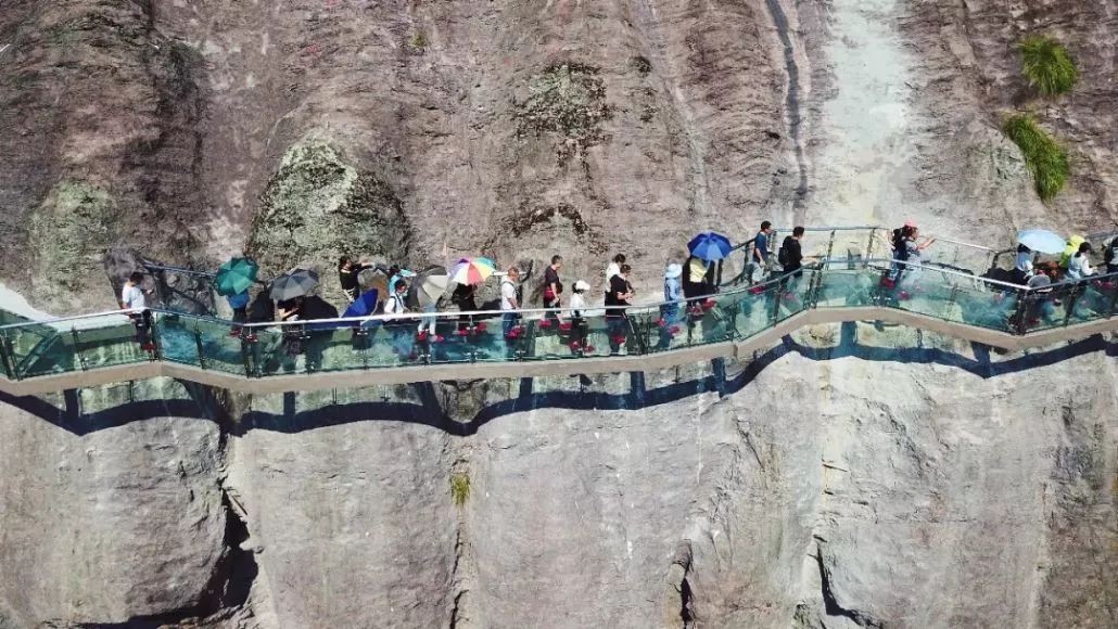 后前往国家 AAAA 景区有“小九寨沟”之称的—【张家界大峡谷景区 玻璃桥】,位于张家界市慈利县三官寺乡,紧邻世界自然遗产、世界地质公园张家界武陵源风景名胜区。【张家界大峡谷玻璃桥】它目前是世界最高、跨度最长的全透明玻璃桥,玻璃桥总长约430米,宽6米,高300米,桥面全部采用透明玻璃铺设,桥中心有全球最高的蹦极台,整个工程无钢筋支架,是一种全玻璃结构的桥梁。此玻璃桥还是世界首座斜拉式高山峡谷玻璃桥。峡谷里植被繁茂,空气清新,凉爽舒适,溪水上弥漫着一层薄雾,宛如来到世外桃源,让人烦恼顿消。