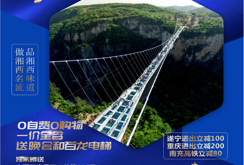 门票: 张家界森林公园门票、大峡谷+云天渡玻璃桥门票、恩施女儿城、魅力湘西晚会。