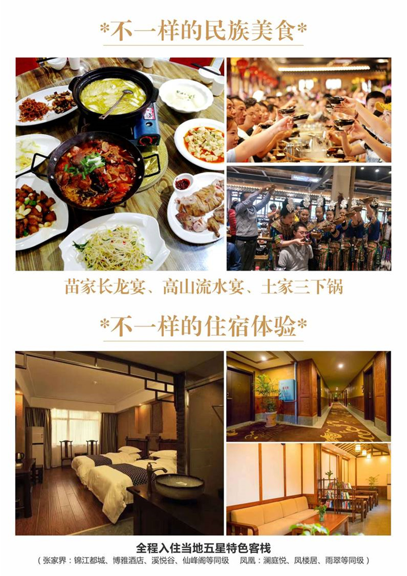 住宿: 全程入住经济型酒店,凤凰升级一晚豪华型酒店,湖南酒店不提供一次性洗漱用品请自备(酒店标准间,不含单房差)。