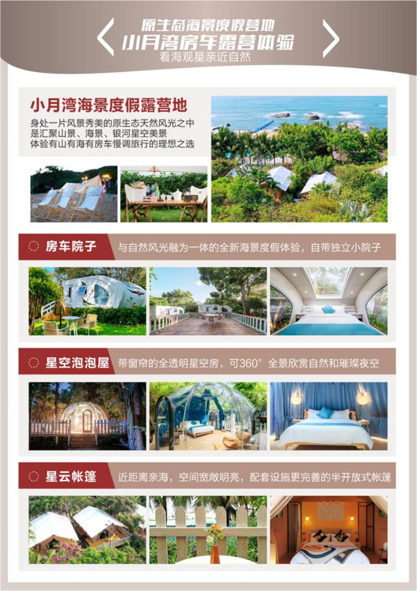 ◎夜晚下榻于大小洞天景区内【小月湾海景度假露营地】,营地坐拥5A级景区的山海之美,占有天然地利之优势,身处一片风景秀美的原生态天然风光之中,是汇聚山景、海景、银河星空美景,体验有山有海有房车慢调旅行的理想之选。