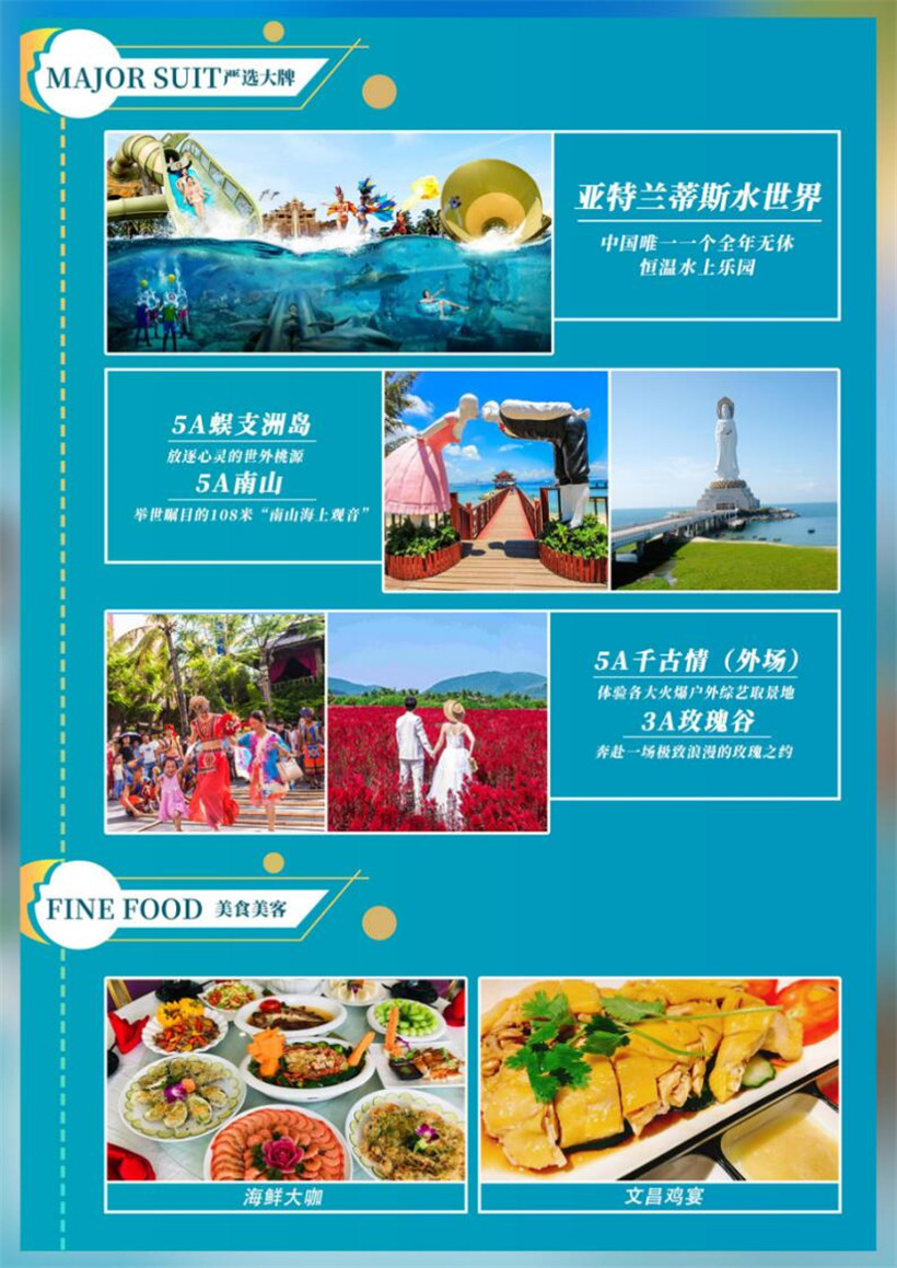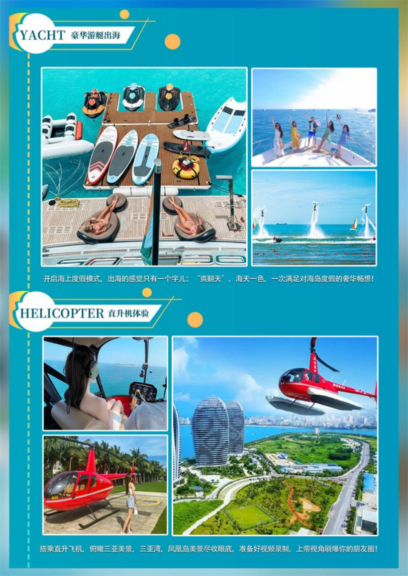 特别说明:1. 如遇天气原因、航空管制或其他不可抗因素不能体验直升机,调整为赠送海鲜风味晚餐;