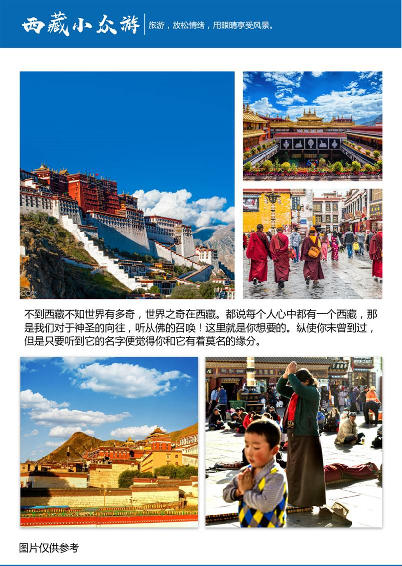 温馨提示:早上抵达拉萨海拔3650米,含氧量只有内地的70%会出现不同程度的高原反应。保持平常心态以外,多饮水、多吃水果、不要做任何剧烈运动,不要沐浴,勿暴食卧床休息是最好的调整!