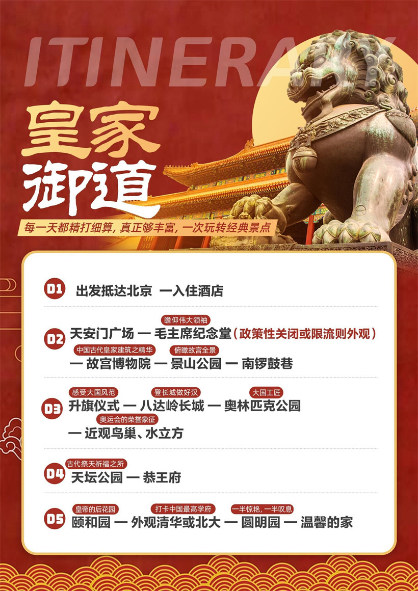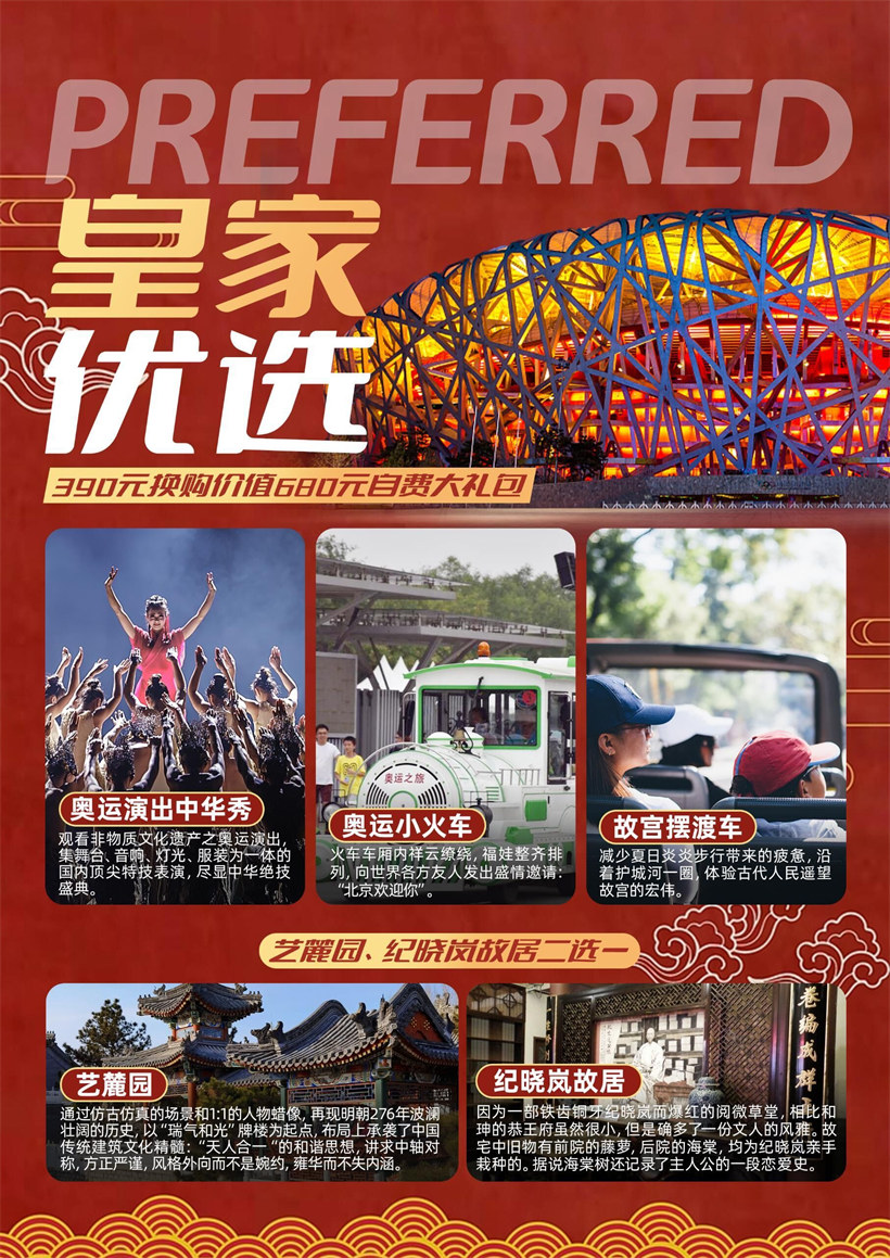 ● 交通:北京全程正规空调旅游车