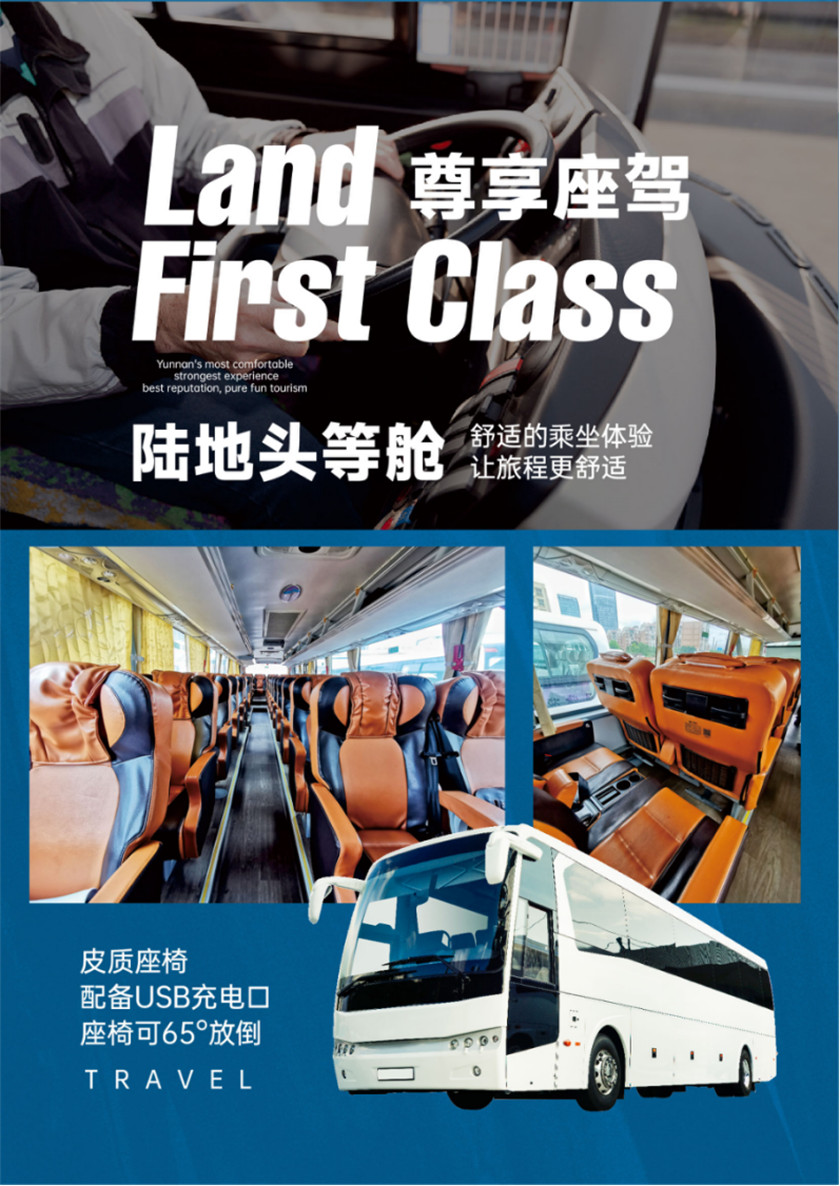 4. 用车:3年内空调旅游大巴,5年以上专业司机驾驶,确保一人一座;