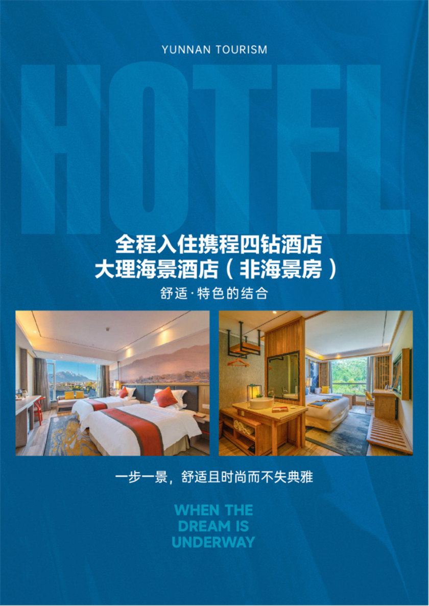 1. 住宿:全程携程4钻酒店+大理一晚海景酒店(非海景房)