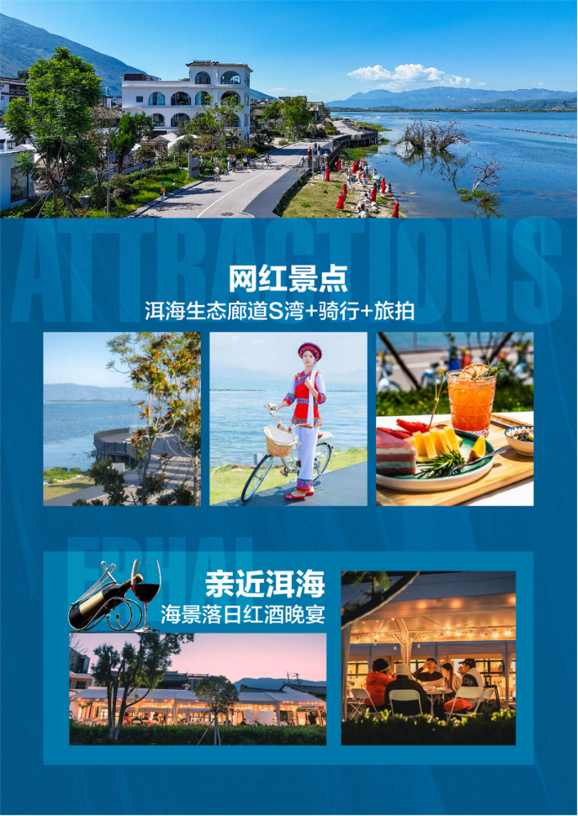 ●随后前往洱海边最美【网红S湾】,这里是亲密接触洱海的最佳地理位置,这里我们还免费赠送【洱海边骑行 旅拍】深度骑行感受洱海边的风景,随后品尝精美【下午茶】