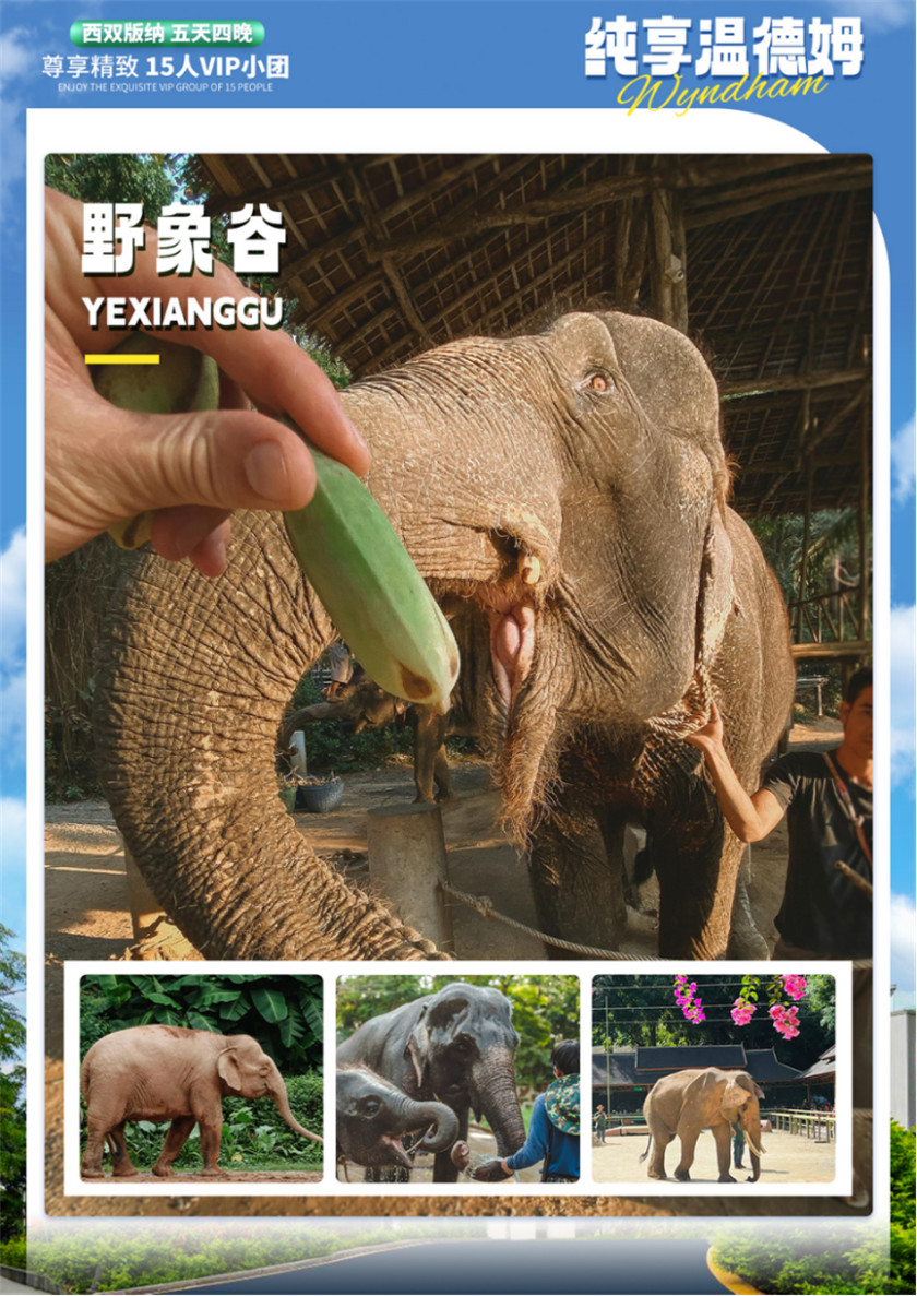 在酒店用过早餐后乘车前往理想而神秘的热带雨林探险圣地、国家 4A 级景区【野象谷】(游览时间约120分钟),中国首家以保护亚洲象和环境保护为主题的国家公园。越热带雨林,幸运的您还有机会看到壮观的野象群出没、它们时而河边嬉戏、时而踏草寻欢、高兴时还会昂起长长的鼻子唱响高亢的歌(因森林内野生动物出没受时间、天气、区域等诸多因素影响、我们不能保证您能看到这些可爱的精灵)。深度体验,走进野象世界,与大象零距离互动。