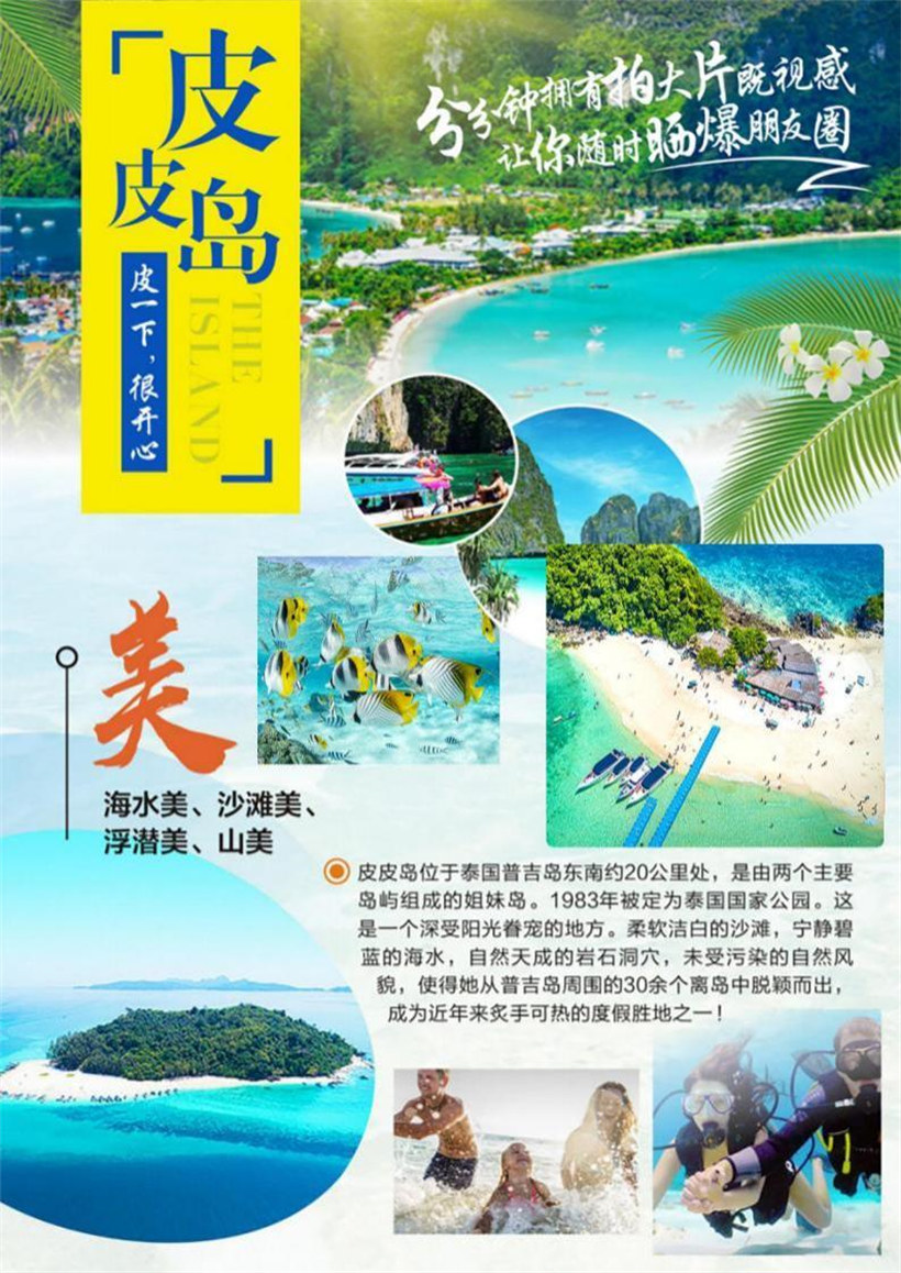 各位团友集合于成都国际机场,乘机前往南部度假圣地---普吉岛。 普吉岛被人们称作“泰国珍珠”,是泰国南部的世外桃源,安达曼的清透海水、美丽海滩与奇形怪 状的小岛及天然钟乳石洞窟等奇特景观围绕着她,因此人们称普吉岛为安达曼海上的一颗明珠。岛上忽而 望来是青翠的丛林,忽而迎面的是蔚蓝海岸,普吉岛正展开热情的双手呼唤着您。抵达后,乘坐本团专用 的巴士,前往酒店休息