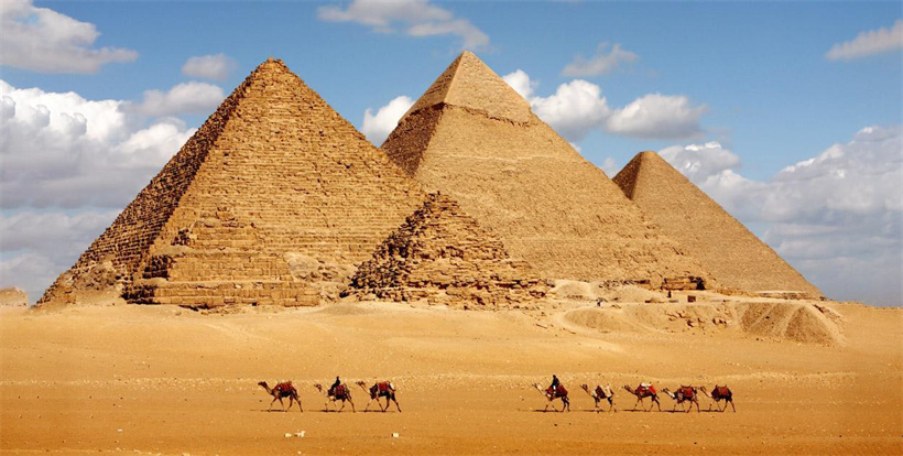 ◆ 吉萨金字塔区1979 年被列为「世界文化遗产」。埃及境内目前发现共有八十多座金字塔,其中以吉萨地区最有名。这里有三座大型金字塔、人面狮身像及许多小金字塔组成。最大的一座是古夫金字塔,高 137 公尺,相当壮观。卡夫尔金字塔高 136 公尺,最小的一座是孟卡拉金字塔;古夫、卡夫尔及孟卡拉三位法老王是祖孙三代,孟卡拉体恤百姓的辛苦,金字塔建得特别小。