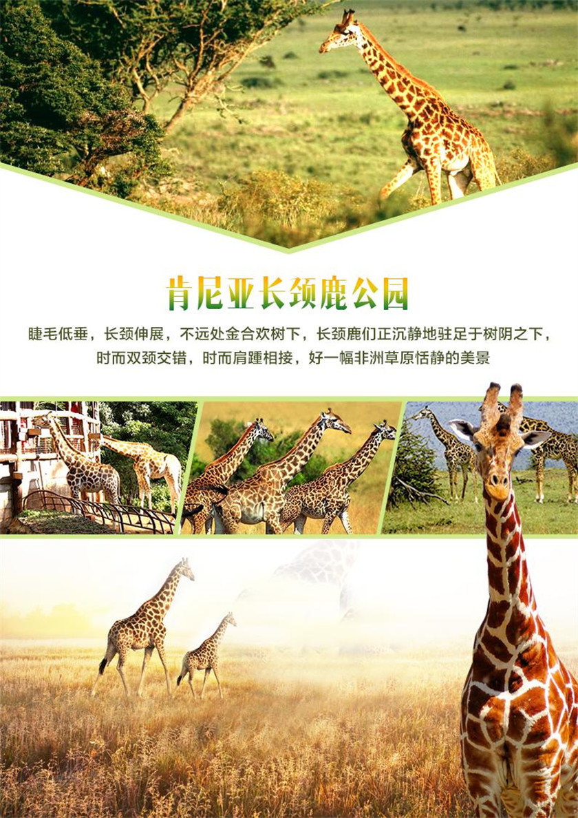 酒店早餐后,驱车返回内罗毕(行车约5小时)内罗毕(英语:Nairobi),是东非肯尼亚的首都,也是东非最大的城 市,非洲最大的城市之一,一座国际化大都市,被称为东非小巴黎。 途径东非大裂谷,是世界大陆上最大的断裂带,从卫星照片上看去犹如一道巨大的伤疤,让人产生一种 惊异而神奇的感觉 午餐后,参观位于肯尼亚首都近郊的【长颈鹿公园】(不低于20分钟),其位于兰加塔,距离肯尼亚首都内罗毕中 心约 5 公里, 集传统与现代建筑风格于一身的英式建筑,是由“非洲濒临灭绝野生动物基金会”的创始人 乔克创建,它的建立是为了保护生活在东非草原上濒临灭绝的罗斯柴尔德长颈鹿。根据情况,游客可以在高 架平台上面对面的喂食,也可以观察长颈鹿用它那常常的带满刺的舌头勾树叶吃。在长颈鹿中心,游客还可 以看到其他的一些动物,比如说疣猪。 前往商场自由购买当地特产礼品