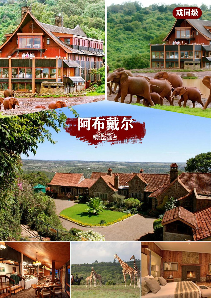 2、 内罗毕国际 5 星酒店双人间,其他住宿为当地特色 LODGE 或者茅草屋双人间【散客拼 团,凡单人或单数(如三人)报名,按拼房处理,若不能拼房则需补单房差!请报名时提前 确认!】 安博塞利:KiBo Villa/Kilima Camp/Sopa lodge 纳瓦沙:NAIVASHA SAWELA LODGE 阿布戴尔:ARK lodge/ Aberdare country club/TREE TOPS Hotel 树顶酒店 马赛马拉园内:KK lodge/SIMBA lodge /MARA FIG TREE CAMP 内罗毕国际五星: Radisson blu Hotel(upper hill)/Argyle grand hotel 温馨提示:旅游旺季当地资源紧张,酒店时常满房,为保证您的旅途舒适体验,我们会 尽量安排上述参考酒店,如遇到酒店无房或政府征房等不可抗力情况,实在无法安排, 我们会为您甄选并安排其它同等标准酒店。房型默认为双床标准间,若您对房型有特殊 要求请及时告知,我们将尽力为您安排,以酒店实际安排为准。