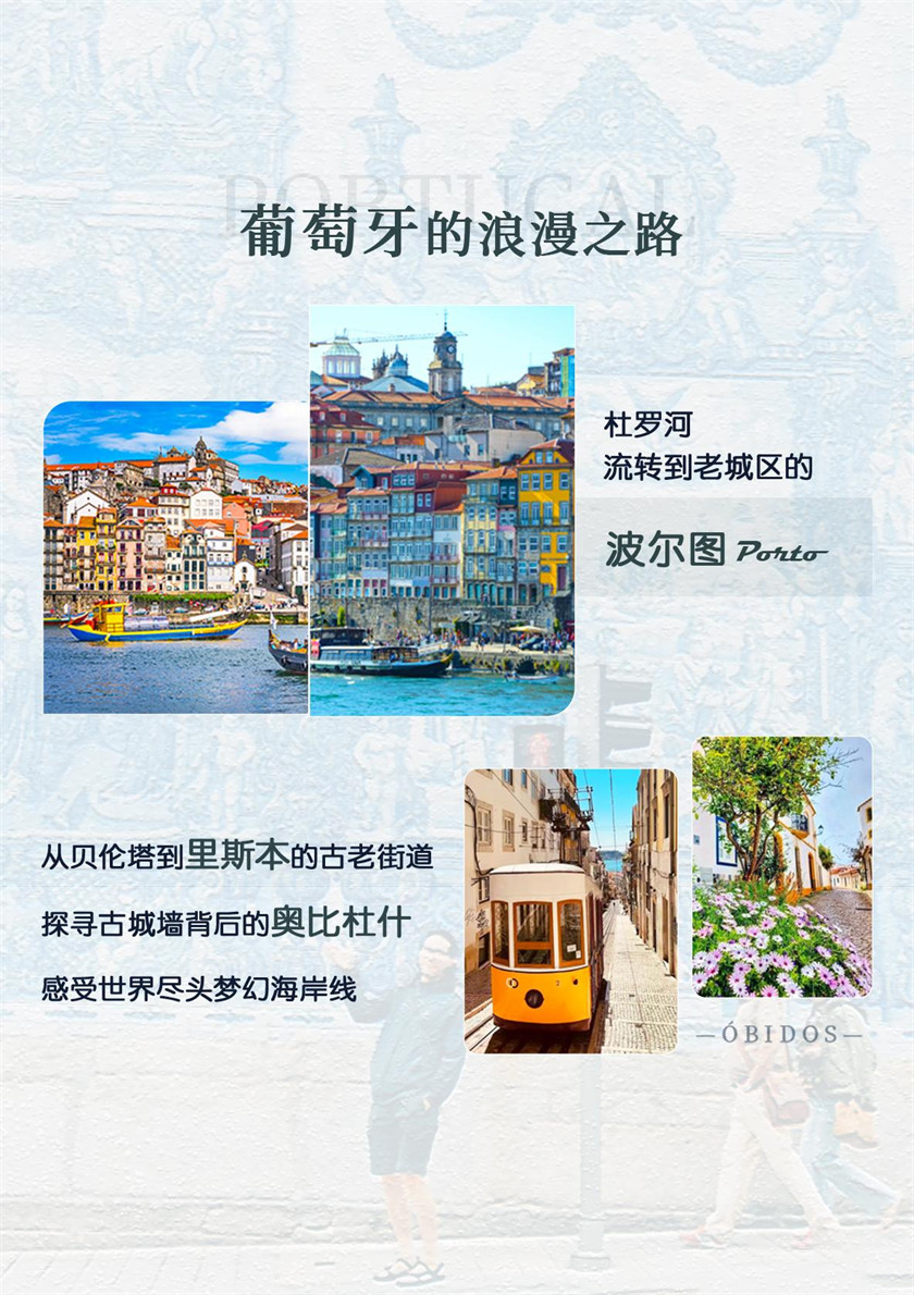 约 11:00 游览【奥比杜什小镇】:位于里斯本北边约 100 公里的一个小城。13 世纪时,葡萄牙皇后伊莎贝拉来到此 处,初见此城非常欢喜,认为奥比杜斯就像珍珠一样镶在大西洋岸边。於是国王阿方索二世将这城市送给 皇后,当作为结婚礼物。因为这一层缘故,此城又号称「白色婚礼之城」,又有「山谷间的珍珠」之称。 从此它就成为葡萄牙一个宁静的童话小镇。