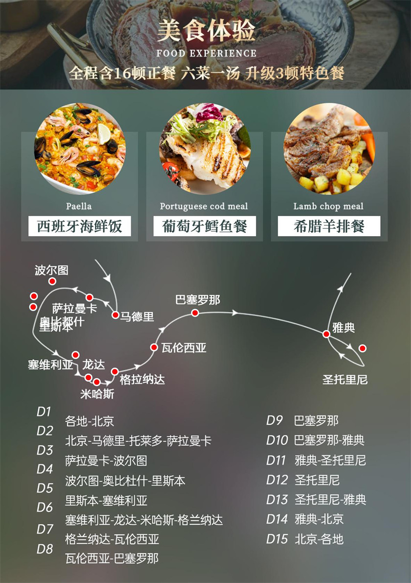 1、中国至欧洲往返机票及税金(团队经济舱)
