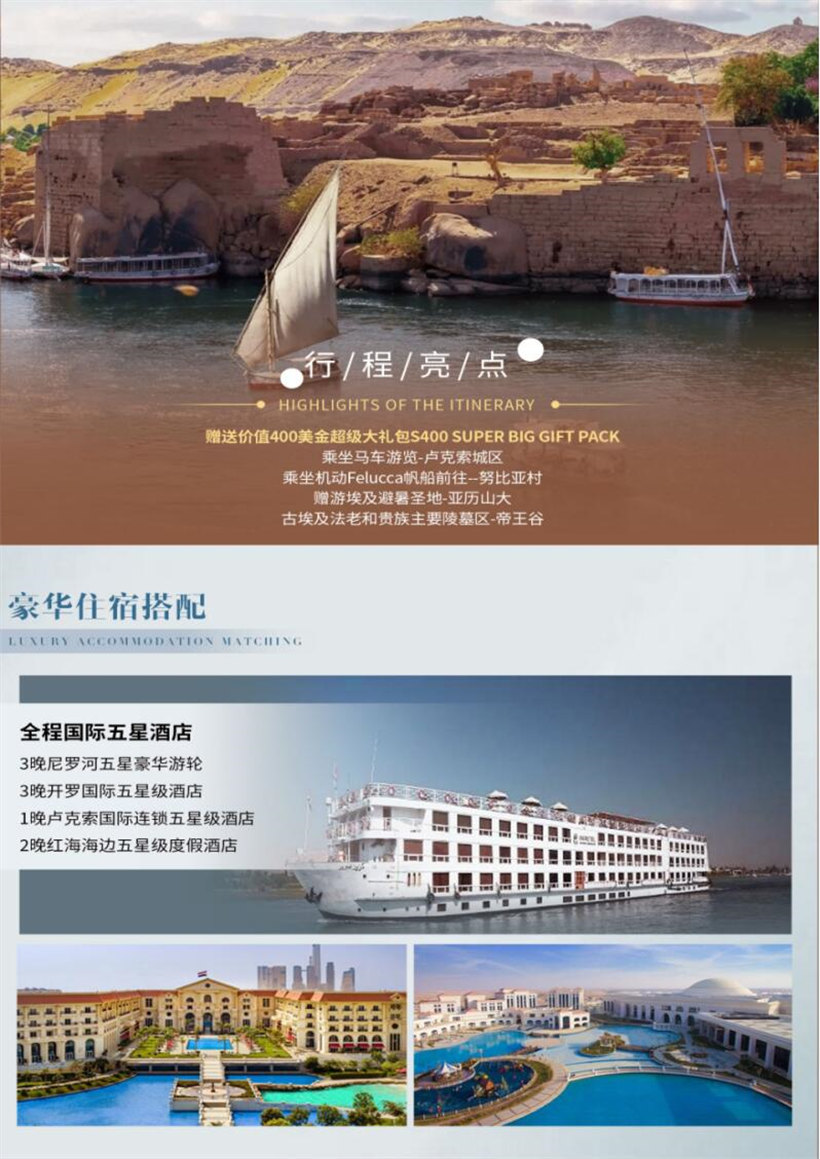 4、埃及6晚当地五星酒店(酒店含早餐)+3晚尼罗河游轮(游轮含全餐);