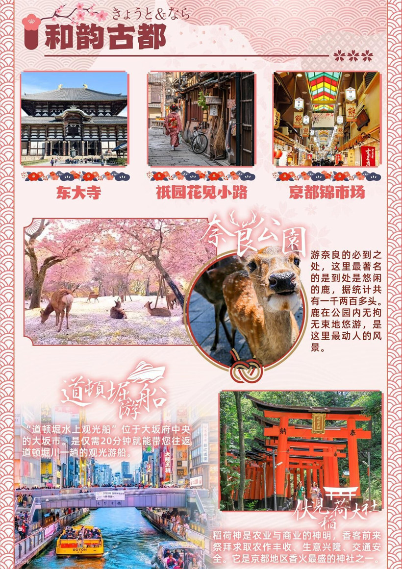 您可来一次关西门户神户的文化之旅,在六甲山赏价值 1000 万美元的夜景!或者来一次主题乐园之旅,前往大阪环 球影城享受童趣浪漫!亦可漫游京都、奈良各种组合搭配