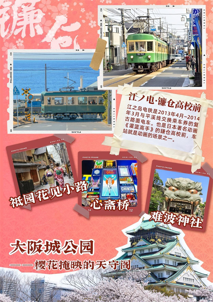 【江之电】(约 30 分钟)江之岛电铁是 2013 年 4 月~2014 年 3 月与平溪线交换乘车券的复古路面电车。也是日本著名 动画《灌篮高手》的鎌仓高校前,车站就是动画的场景之一