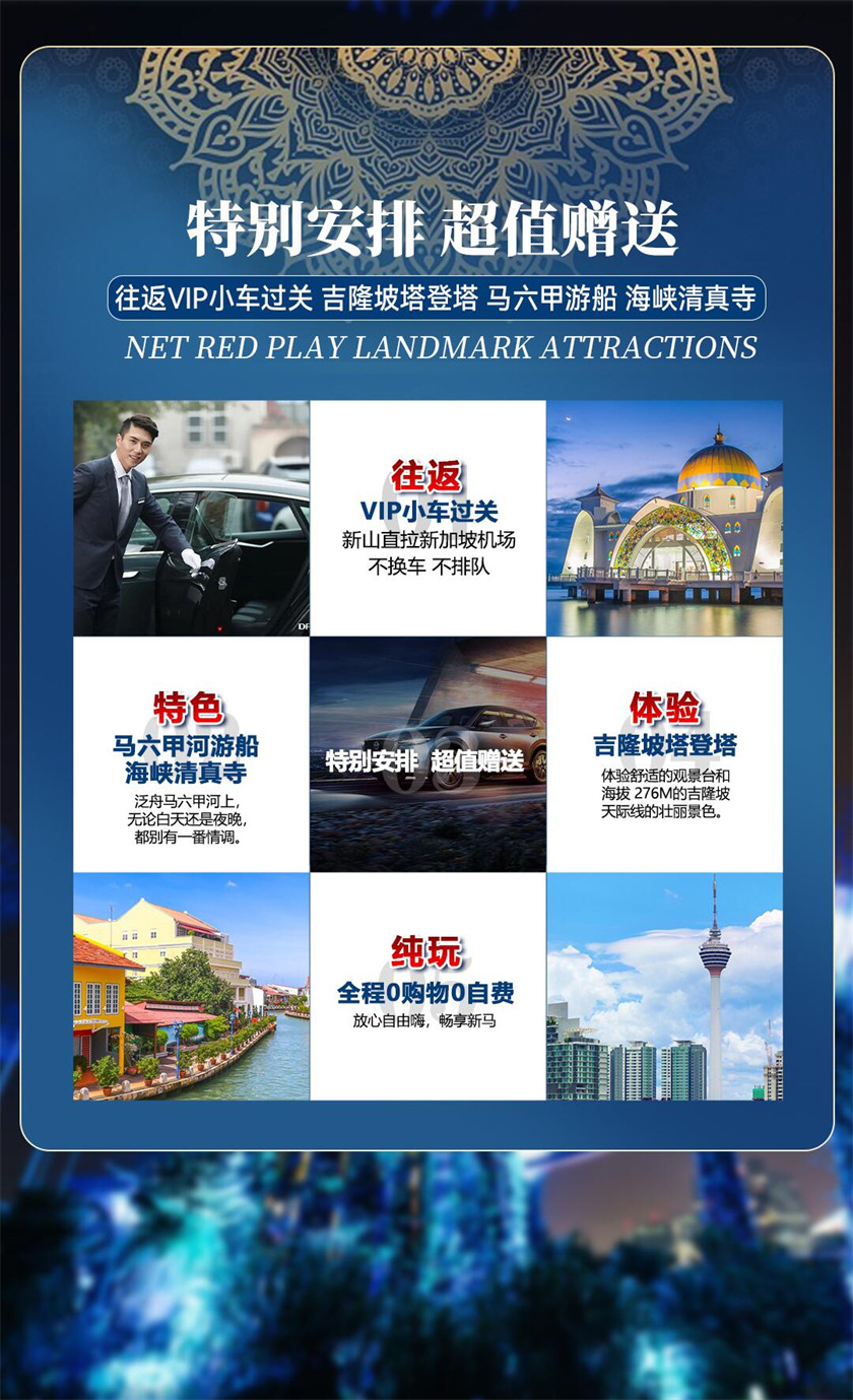5、景点:吉隆坡塔登塔,马六甲游船,马六甲海峡清真寺,行程内所列景点;