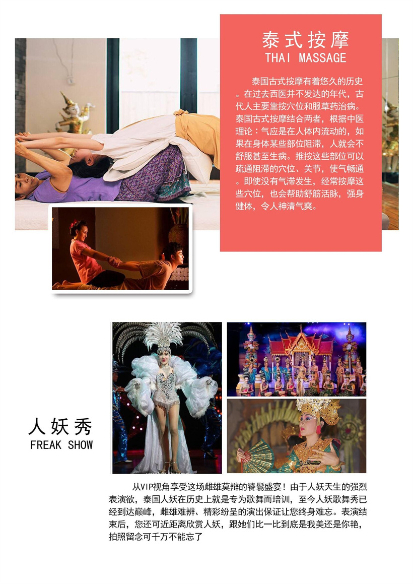 之后我们返回芭提雅。『不低于 120 分钟』大礼包赠送:【逍遥岛】『不低于 30 分钟』而后亲身感受【泰国古式按摩】(温馨提示: 18 岁以下儿童不安排按摩,费用不退)泰国古式按摩有着悠久的历史。在过去西医并不发达的年代,古代人主要靠按穴位和服草药治病。泰国古式按摩结合两者,根据中医理论∶气应是在人体内流动的,如果在身体某些部位阻滞,人就会不舒服甚至生病。推按这些部位可以疏通阻滞的穴位、关节,使气畅通。即使没有气滞发生,经常按摩这些穴位,也会帮助舒筋活脉,强身健体,令人神清气爽。『不低于 55 分钟』