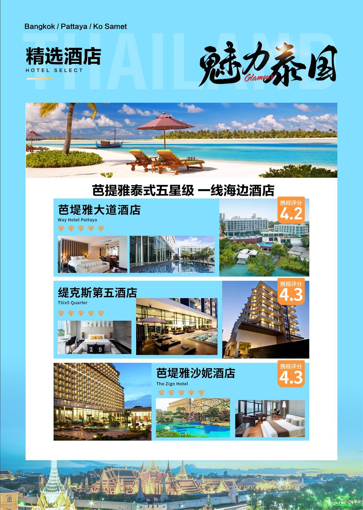 Way Hotel Pattaya 芭堤雅大道酒店 https://www.way-hotel.com/index.php首选 TSix5 Quarter缇克斯第五酒店 https://www.tsix5hotel.com/quarter/ The Zign Hotel 芭堤雅沙妮酒店 https://www.thezignhotel.com/ 如遇房满则换为其他同等级酒店。(保证携程5星) | |